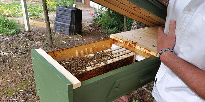 Billy Sanders is the co-owner of Reynolds Mansion, one of Asheville’s premier inns. He provides guests with a sumptuous breakfast sweetened with honey created by some 20,000 bees in nine hives located near the kitchen garden.