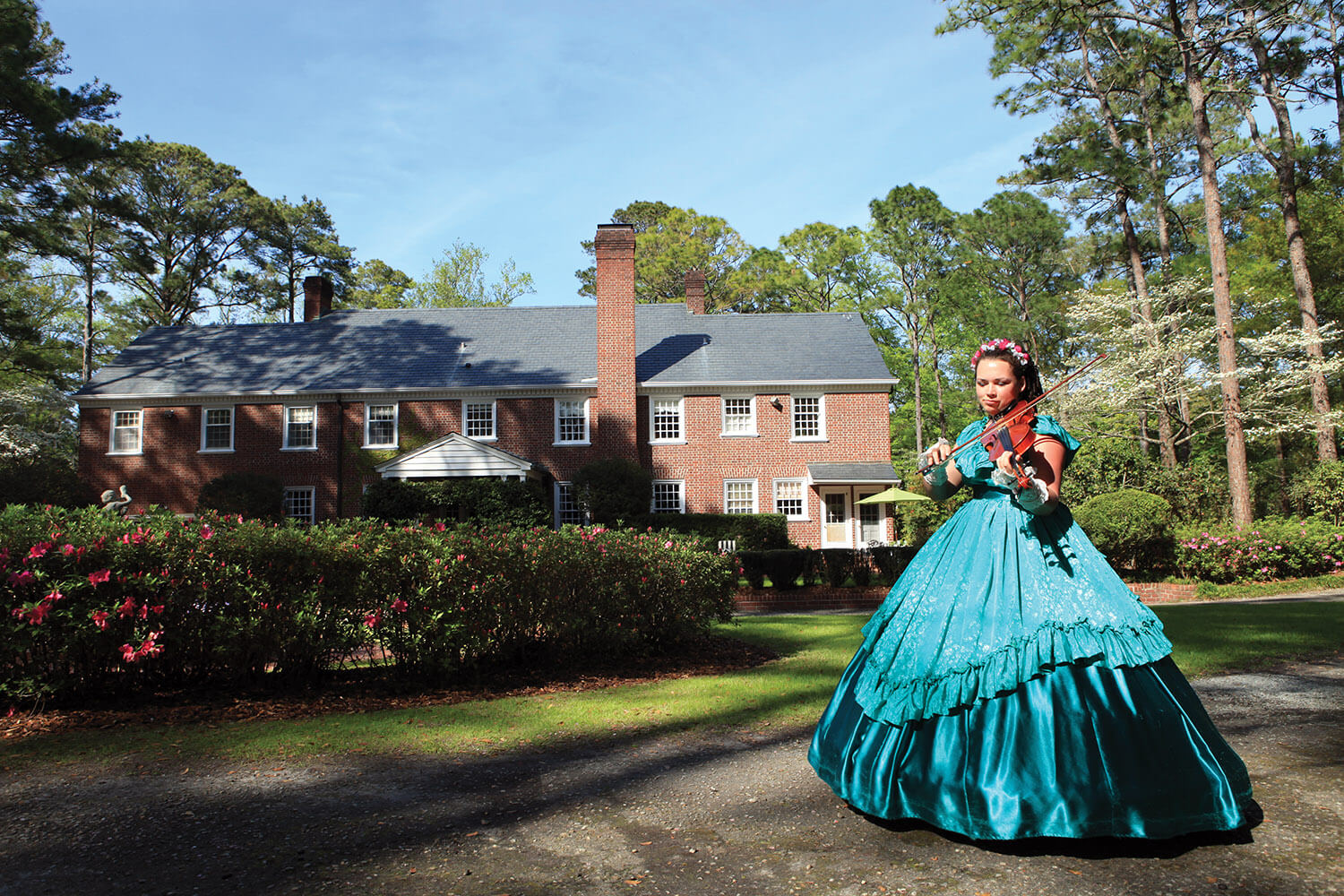 You see the belles all over town: at the festival queen’s coronation, aboard a riverboat on the Cape Fear, on floats in the Azalea Parade, and across all the gardens on the tour.