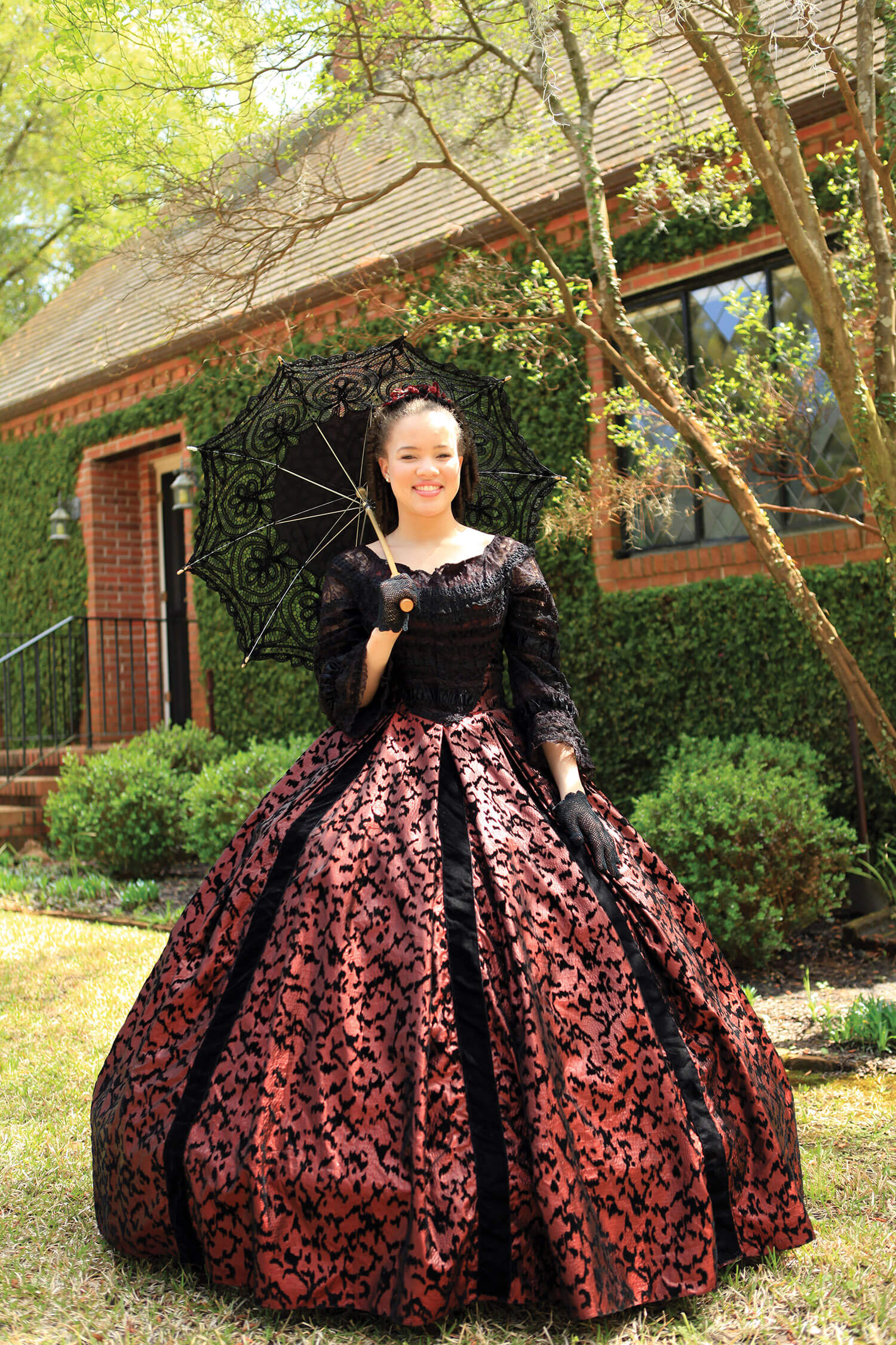 “There’s almost an art to being a belle,” Franks says. “If you walk in a normal manner, the dress will kind of bounce. But if you take it one step at a time — almost like dancing — then the dress kind of sways, as you do. If you try and walk too quickly, it’s almost like there’s some resistance on the dress. If you walk slowly and gracefully, it’s like you’re not losing it.”