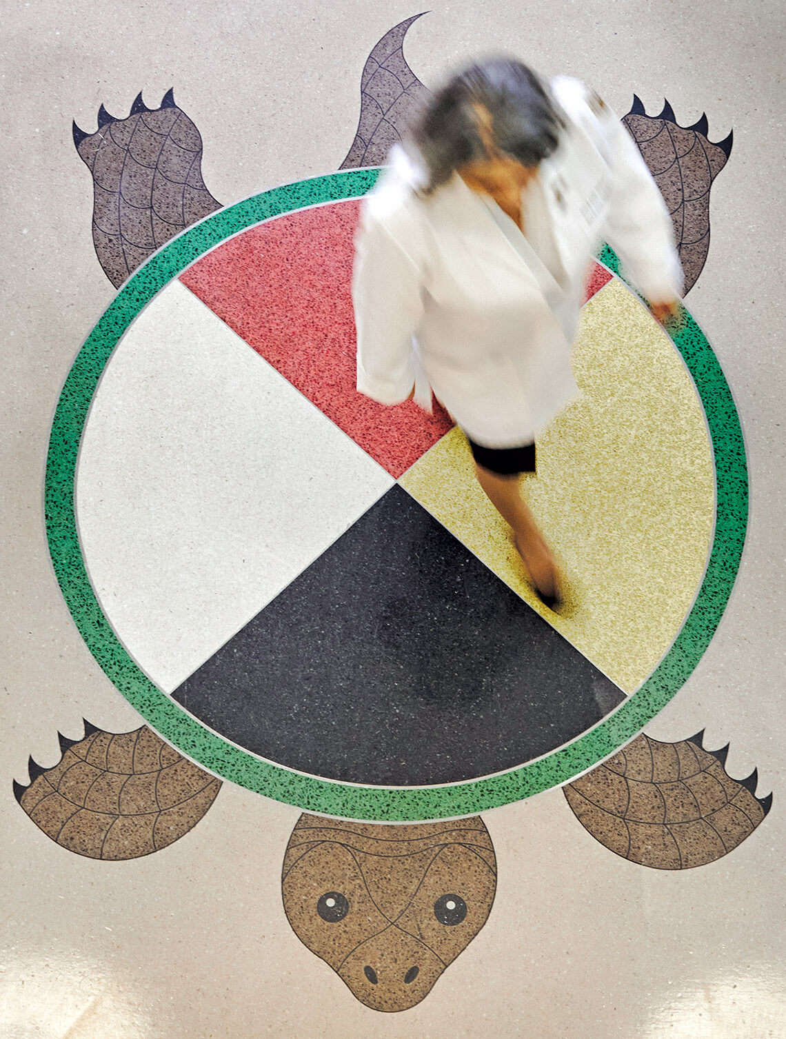 The medicine wheel that Dr. Beasley steps across each day when she arrives at work represents slightly different meanings among various Native American groups, but all view it as a circle-of-life symbol. photograph by Alex Boerner