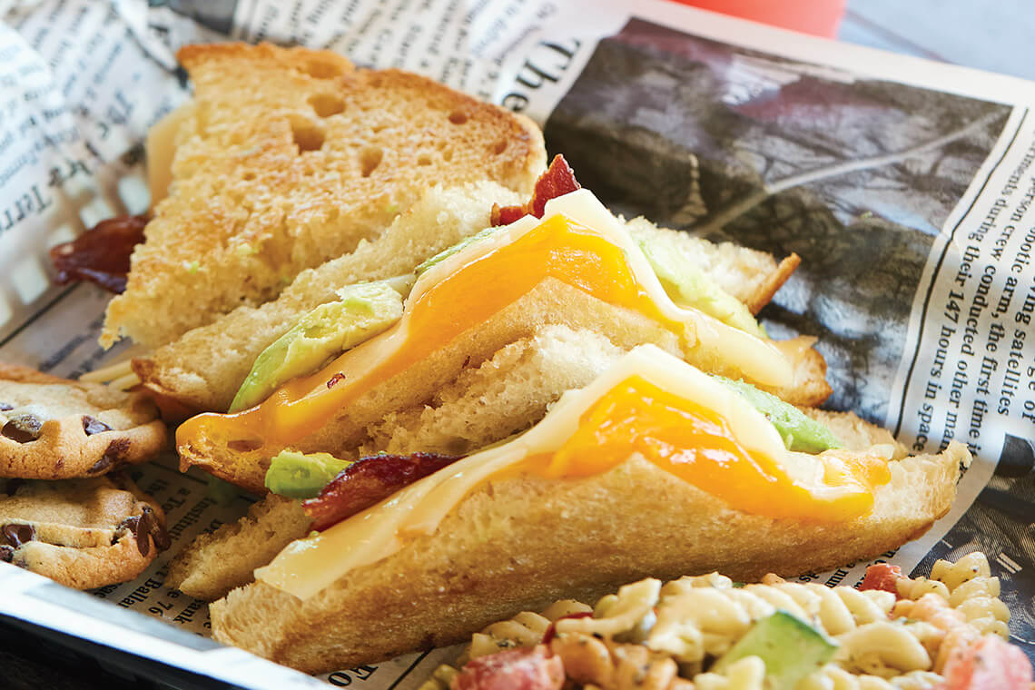 Try Parker and Otis’s Sandwich No. 23: grilled pimento cheese with bacon. photograph by Lissa Gotwals