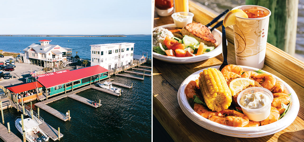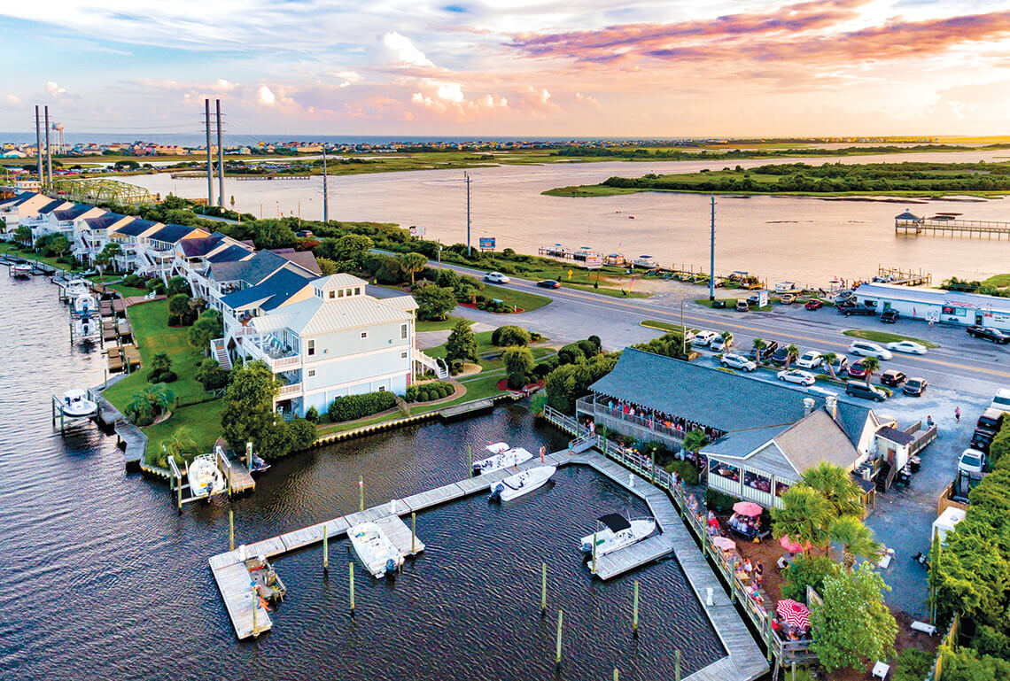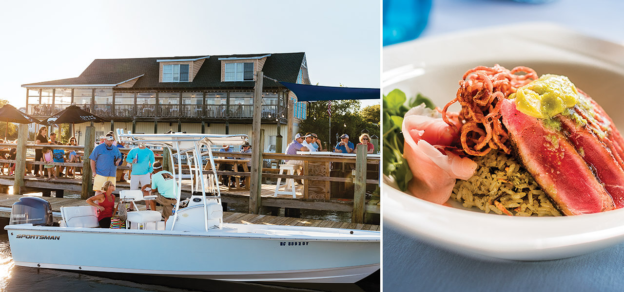 On the mainland side of the Surf City Bridge, Sears Landing welcomes diners by land and by water. photograph by JEFF WENZEL