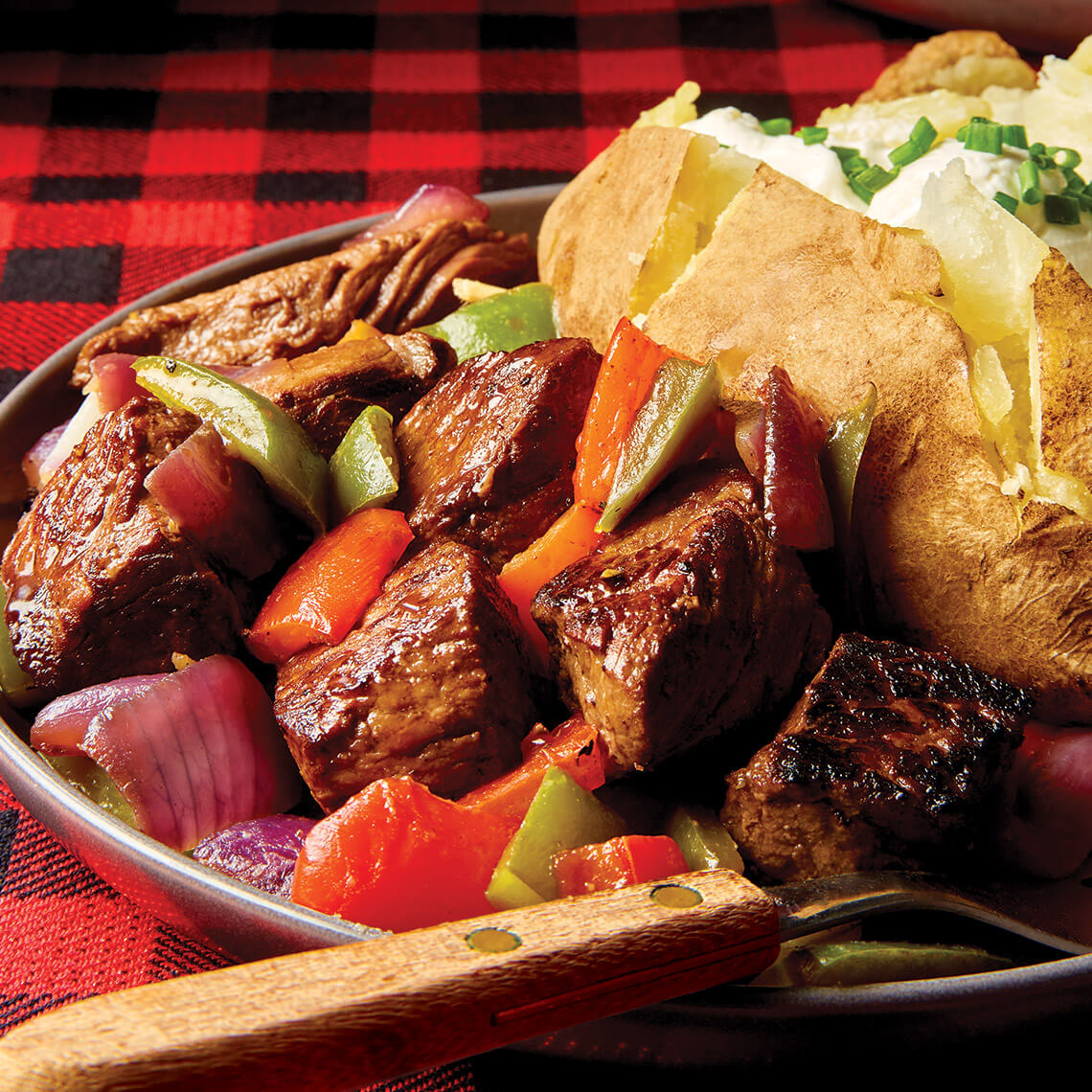 Marinate beef tips overnight and then throw together this quick sauté to deliver sizzling flavors in less than an hour.