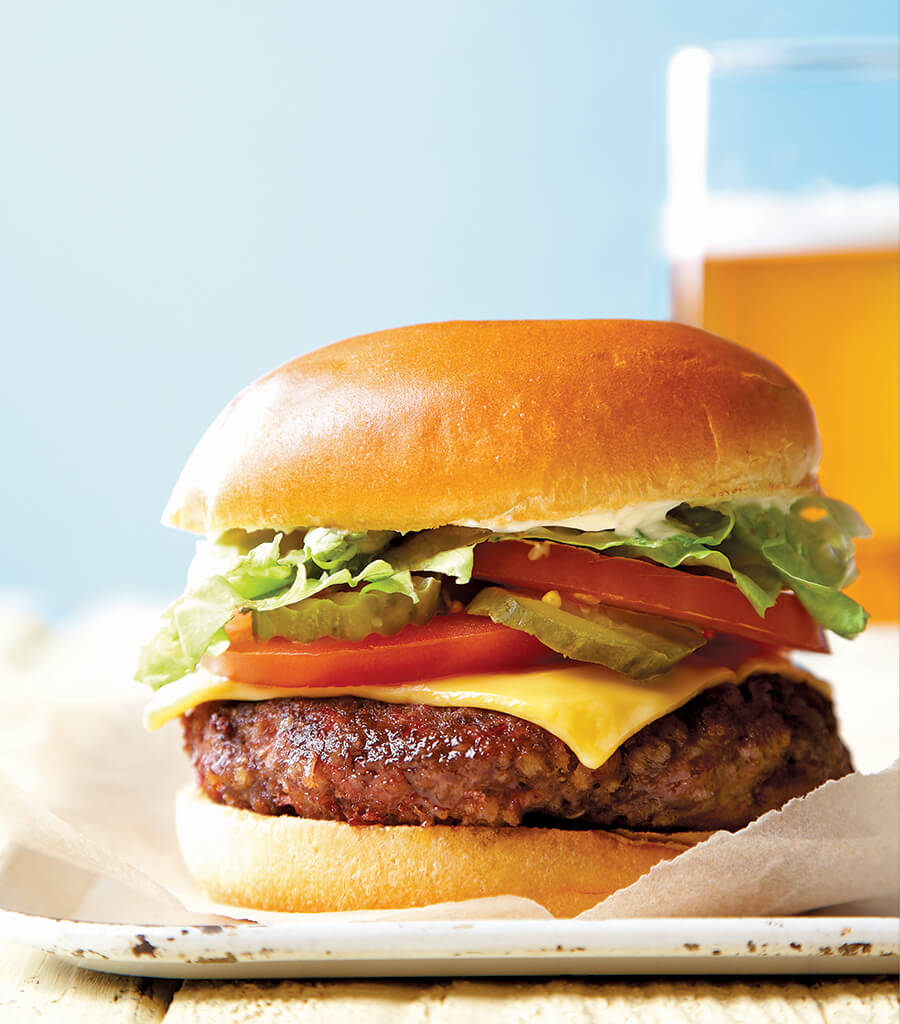 Fresh off the grill — and guess what? There’s diced bacon in the patty.