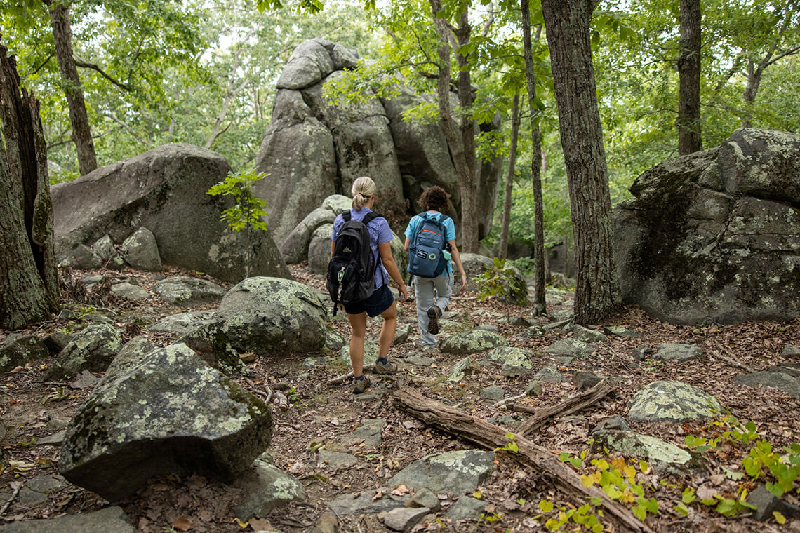 Sure, you can attend a giraffe feeding or watch a sleepy lion paw at the air, but insiders know that one of the North Carolina Zoo’s best kept secrets is its five distinct trails that meander through hardwood forests, past eye-opening rock formations, and over trickling creeks to a covered bridge and to the top of the nearly thousand-foot Purgatory Mountain.