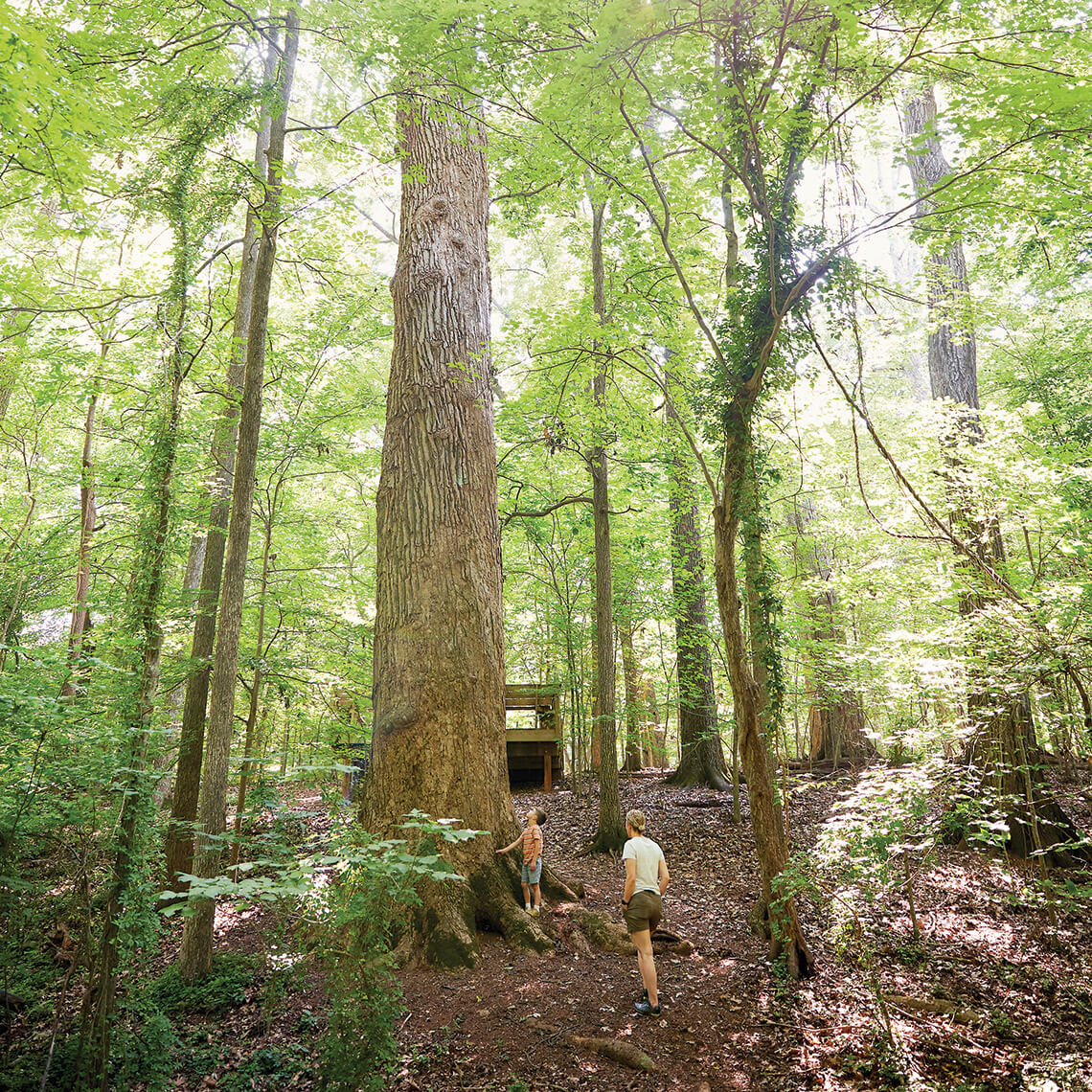 Guilford College Woods in Greensboro provides an intimate place to reflect on what life was like for individuals escaping slavery via the Underground Railroad. An old-growth tulip poplar stands at the end of a 0.3-mile educational trail, which was created in 2017. Guided tours contextualize how the Underground Railroad was formed, with freedom seekers collaborating with freed and enslaved African Americans, as well as white abolitionists and allies. Visitors are encouraged to meditate on the questions, “What can we learn from our shared histories and life stories?” and “Do we seek to create justice and places of refuge in our own community and in the world at large?” — Emma Shew