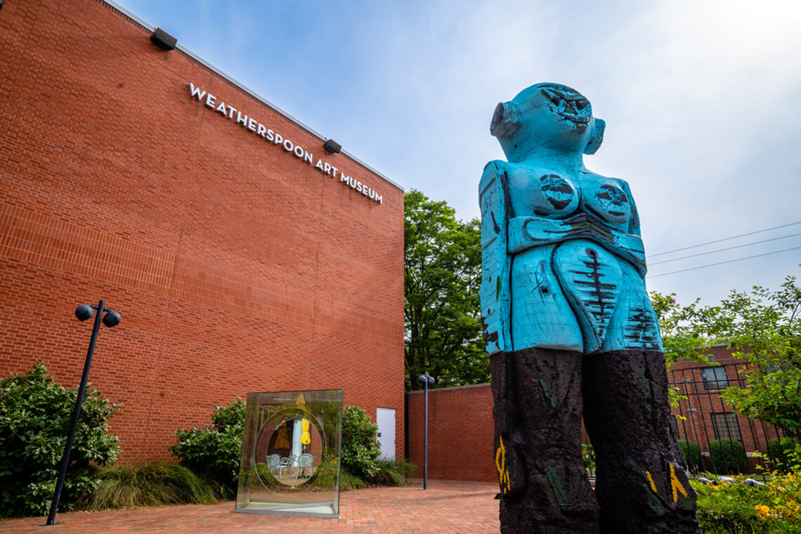 Reaching both UNCG students and Greensboro residents is just one of the goals of The Weatherspoon, a state-of-the-art museum that bridges the campus and the broader community. With more than 17,000 square feet of exhibition space, its six galleries of modern and contemporary art — and a sculpture courtyard — are available free of admission.