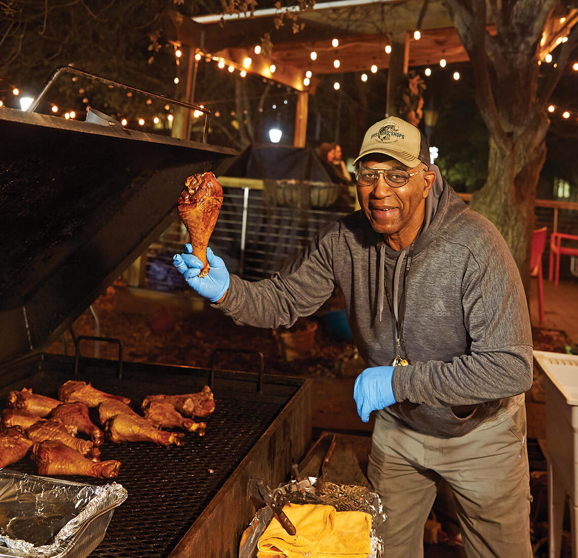 Roasted marshmallows and turkey legs — grilled by a Davidson Presbyterian Church volunteer — are always popular treats at Christmas in Davidson. photograph by Stacey Van Berkel