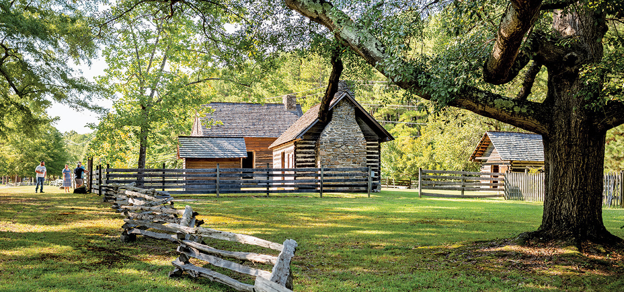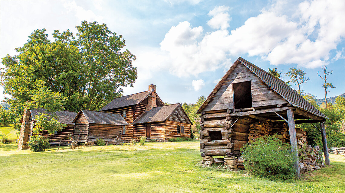 The log cabin and outbuildings at the Zebulon B. Vance Birthplace take visitors back in time. photograph by Tim Robison