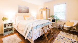 Guests enjoy the comfortable beds, intimate garden, and convenient location of Birdsong Cottage. photograph by Matt Ray Photography