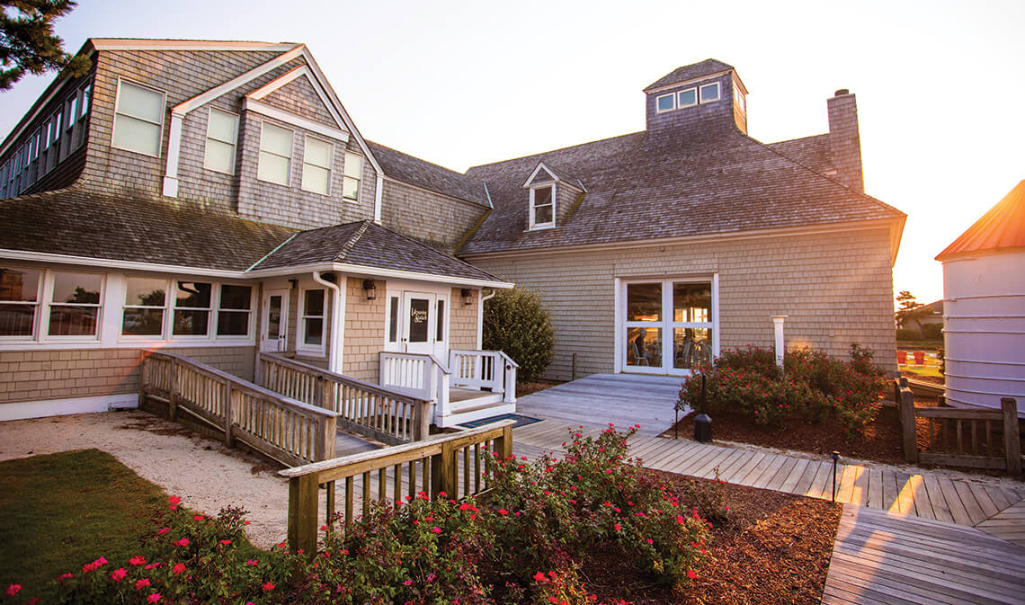 As shipping traffic increased in the years following the Civil War, many ships were lost in the perilous waters off North Carolina’s coast. In 1874, Caffey’s Inlet Lifesaving Station was established as one of seven such outposts on the Outer Banks. Servicemen lived and worked in the wood-shingled cottage, keeping watch from a hipped-roof lookout tower. The station was abandoned in the late 1950s, as modern equipment and a decline in the use of sailing vessels reduced the number of shipwrecks in the area. Today, Sanderling Resort operates the site as the Lifesaving Station restaurant, which serves a seasonal menu of Southern coastal fare made with regionally sourced ingredients.