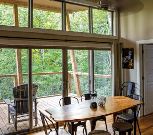 At Cabin 71, the large windows and deck overlook a private hiking and biking trail. photograph by Tim Robison