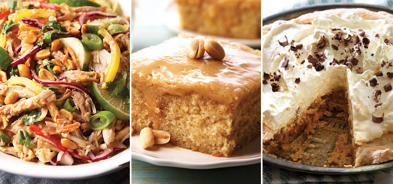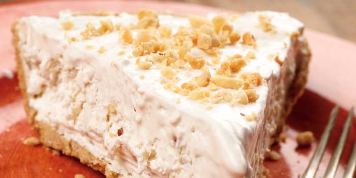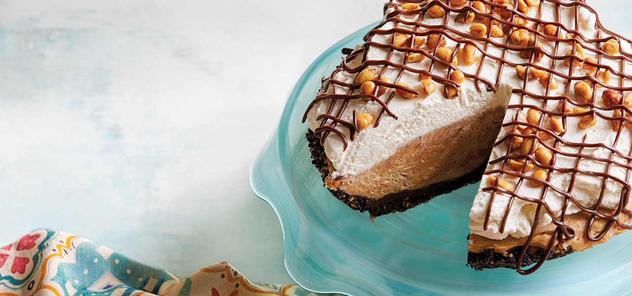 For the topping: Fold the vanilla into the reserved whipped cream. Using a spatula or pastry bag, evenly spread or pipe the whipped cream over the pie and sprinkle with peanuts.