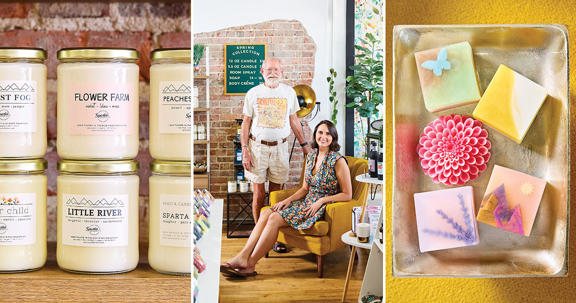 Sparta Candle Co. uses molds to create scenes in soap — like golden hour — and to make the flower farm soap look like it was picked from a field of zinnias. photograph by Stacey Van Berkel