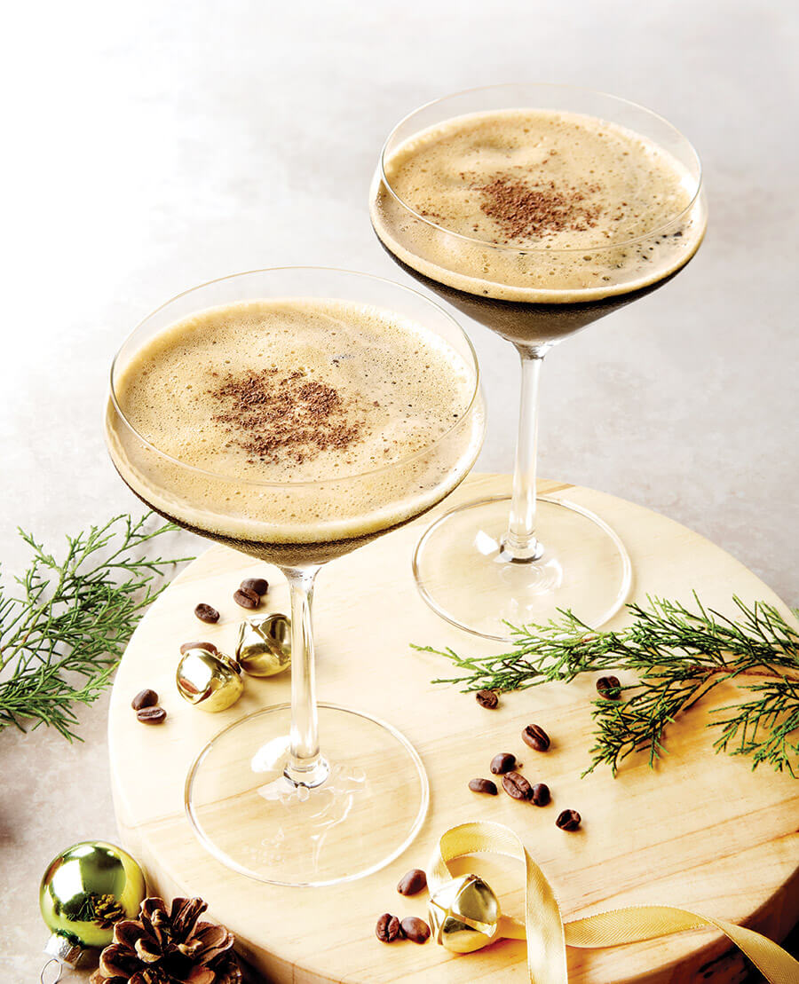 Fill a cocktail shaker with ice and pour in all ingredients. Shake vigorously for up to 1 minute. Strain and pour into a large, pre-frozen martini glass. Enjoy after a Christmas feast or by a fireplace on a cold winter night.
