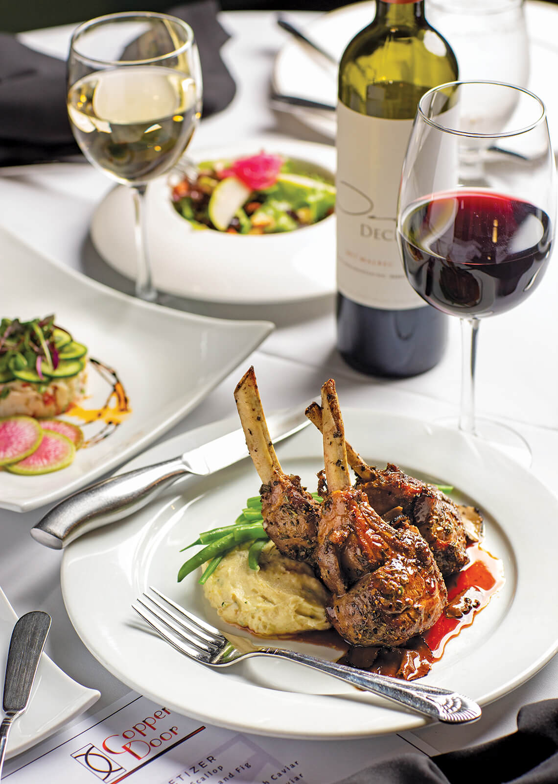 A glass of wine and an elegant meal at this 1915 home feels like having dinner at your fanciest friend’s house — if your friend hand-cut and aged their own filet mignon.