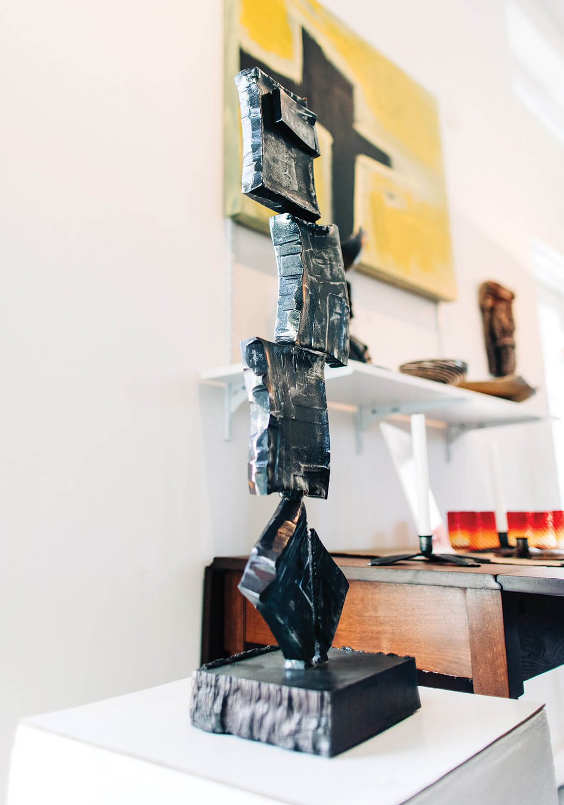 The garden and gallery at Anvil Arts are full of sculptures of all sizes and textures, made with clay, steel, reclaimed metals, glass, wood, and more. Sculptor Bill Brown started his studio with a small display space more than 40 years ago. He works primarily with steel, using traditional forging techniques to create contemporary sculptures, and his studio is often open for guests to check out the sculpting process. In 2017, Bill’s wife, Liz, the studio’s curator, began selling other artists’ work alongside Bill’s. “I find great reward in being able to exhibit the work of these diverse artists,” she says, “hoping visitors will come explore, experience, and collect these sculptures to enjoy in their lives.” — Liz Johnson
