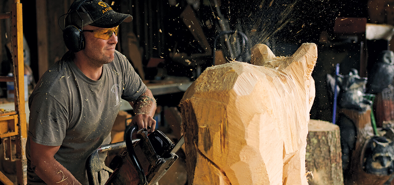 As Mike Ayers tugs the cord to start up his chainsaw, you might suspect that he’s about to cut down a tree or split logs for a fire. But his task is much more intricate: When he’s finished with the piece of wood in front of him, Ayers will have transformed it into a bear with a face so full of detail that you might think it’s alive. Or maybe he’ll craft a bird, its wings spread as if a gust of wind were blowing through the feathers. No matter what he makes, it’s sure to be lifelike. Ten years ago, Ayers’ uncle saw his nephew whittling with a pocketknife, so he rolled a log to him and asked him to try to carve a bear. Ayers picked up a chainsaw and went to work. It took him two full days, but after that, he knew he’d found his calling. Now, Ayers runs Mountain Mike’s Whetstone Woodworks in Maggie Valley and travels around the world to participate in woodworking competitions. He’s won the title “Master of the Chainsaw” in an event in Pennsylvania multiple years in a row. “The competition is what keeps my drive going,” Ayers says. “Sometimes when I get bored, I’ll sign up for a new one, and that motivates me to carve.” — Anna Mudd