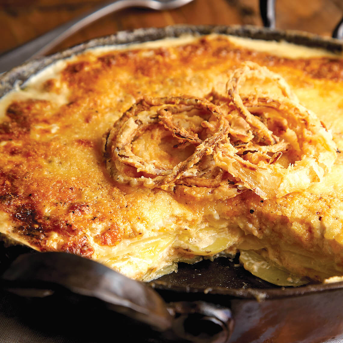 Four-Cheese Scalloped Potatoes with Fried Onions