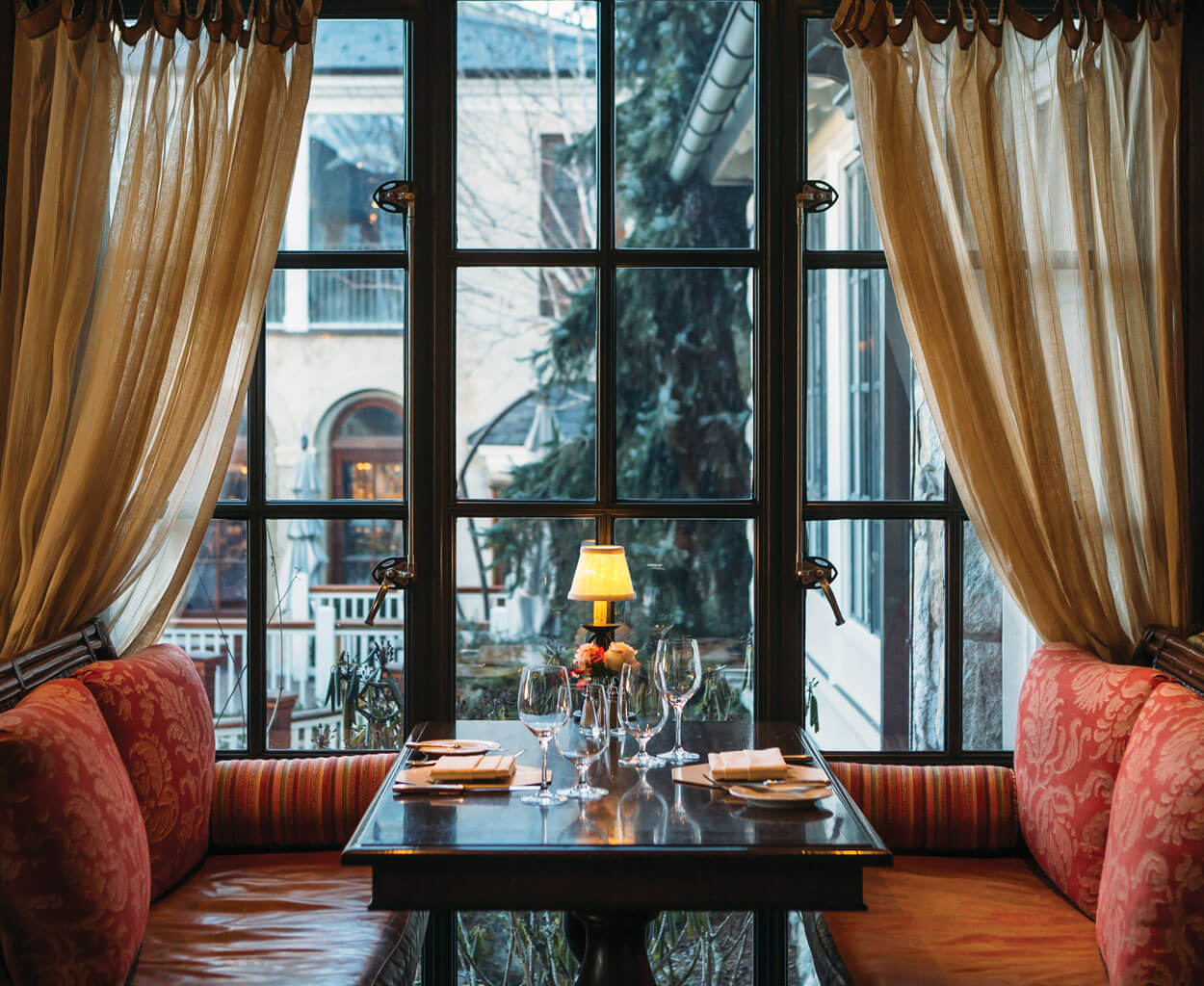At The Old Edwards Inn in Highlands, each corridor seems to lead to something elegant, like Madison’s Restaurant and Wine Garden. photograph by Tim Robison