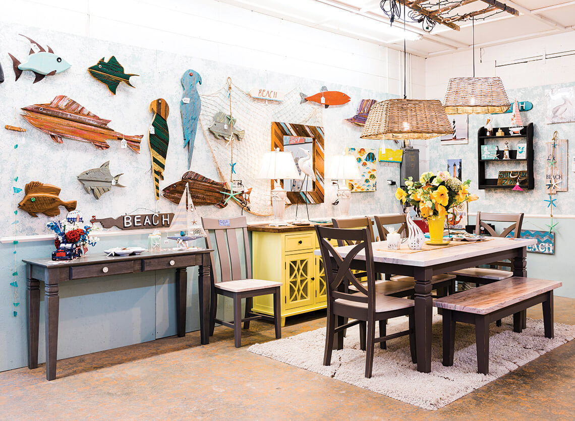 At The Gathering Place, shop for farmhouse tables made from scratch, plus coastal decor to complete any beach house. photograph by Matt Ray Photography