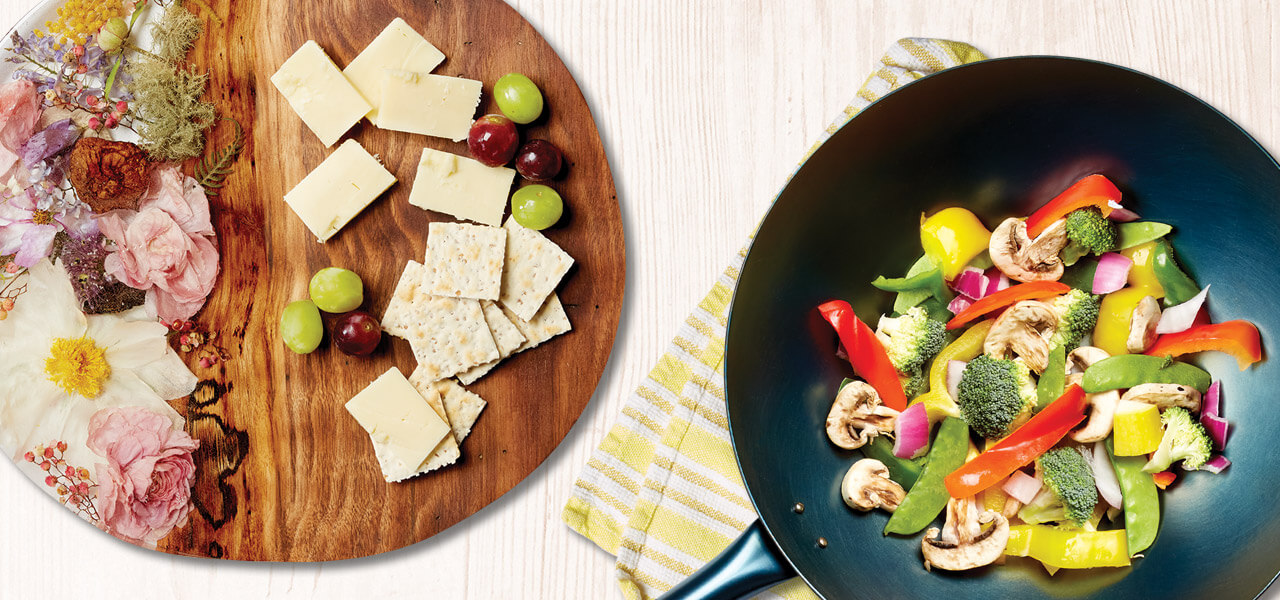 On the side of every standard wok that metalworker Cory Williams makes, stainless steel rivets seal the textured handle, knurled for optimal grip, to a Weyh signature brass disc. When Williams was a metal sculptor living in Asheville, early iterations of this design were tested by Chef Patrick O’Cain in the kitchen of his restaurant, Gan Shan Station, countless times over the span of a year. Williams worked closely with O’Cain, adjusting the design and giving the chef a new prototype each time he requested a change until, finally, the wok’s proportions, weight, durability, and aesthetics were perfect. Williams now sells his handmade woks online from his home studio in Kernersville. Each wok is seasoned in his oven, and two of the original prototypes sit on his stovetop, a reminder that perfection takes time.