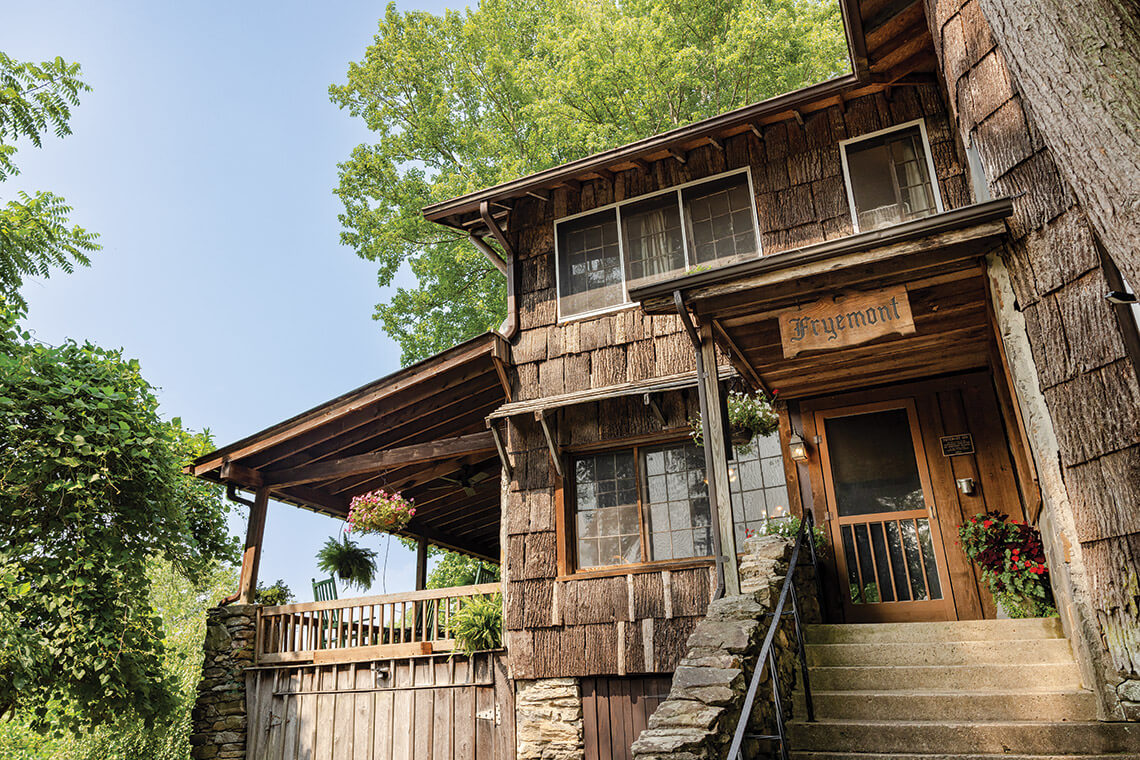 Built a century ago just above downtown Bryson City, the Fryemont Inn is a time capsule of the era when leisured folks retreated from coastal cities each summer to the cool altitude of the Smokies. At the Fryemont, they enjoyed one of the first swimming pools west of Asheville, which is still opened each season. Cherokee masons built the massive stone fireplace that anchors the dining room. From the poplar shingles to the oak-and-maple floors, the construction reflects founder Amos Frye’s access to the best timber from his holdings in what would later become Great Smoky Mountains National Park.