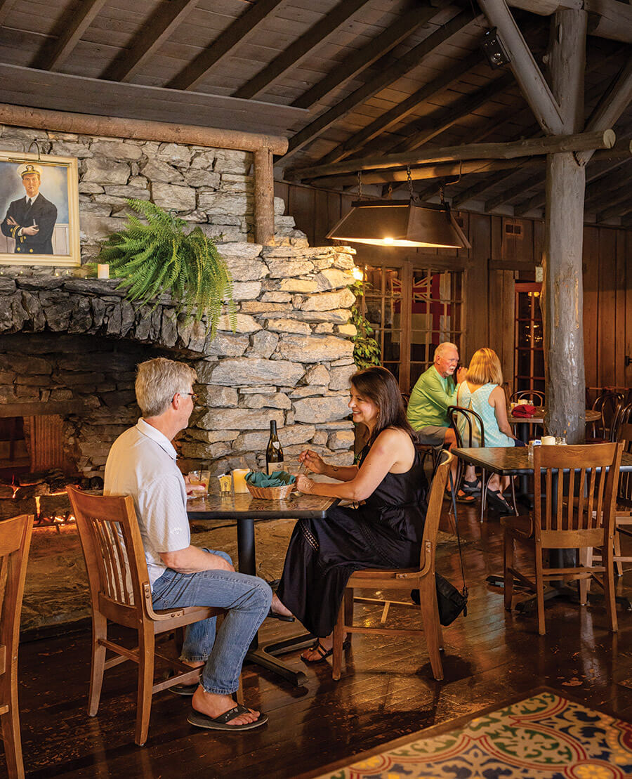 Guests who stay at the Fryemont take part in a long tradition: The chestnut-paneled walls and stone fireplace that they enjoy today were built 100 years ago, designed for Amos and Lillian Frye by their architect, Richard Sharp Smith. photograph by Tim Robison