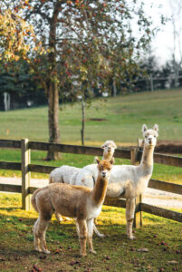 The 20 alpacas of Apple Hill contribute their fiber — prized for its softness and warmth — to make yarn that’s sold in the farm’s store. Each yarn bears the name of an alpaca, so you can meet (front to back) Aspen, Gumby, and Tequila, then let them help you knit a cozy sweater.