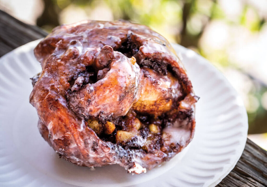 At first glance, you might think there’s a platter of mangled rotisserie chickens on the breakfast counter at Orange Blossom Bakery in Buxton, but you’re looking at an Apple Ugly, a deep-fried, cinnamon-laced fritter filled with apples and glaze that ooze out slowly when you take a bite. “The uglier and more twisted it is,” owner Charley Pereira says, “the more cracks and crevices it has to soak up the glaze.” If you want one, be sure to stand in the “ugly line.” It might just make your day prettier. — Hannah Mitchell