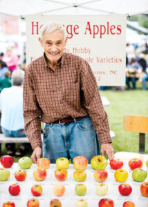 “Let’s drive out to the country! We might find an old apple tree,” Tom Brown told his wife in the early 2000s. These days, Brown has a better method for finding heirloom apples. “I go looking for people,” he says. Wilkes County is full of people who are happy to help — and to show off their prized fruits. “The reason there are so many varieties in Wilkes County is because of the culture — you’ll go to one house, and they’ll have three apple trees that are all different. And then maybe six houses down the road are four more apple trees, and they’ll all be different from the ones at the first house,” Brown says. “Many people in Wilkes told me that they take pride in having apples that are different from their neighbors’.” Though Brown is exhilarated by the search, his sole motivation is keeping the heirloom varieties alive. “Many of the people who could identify these apples are now deceased,” Brow says. “I couldn’t go out today and duplicate the discoveries I’ve had within the past five years, because I might not be able to find people to identify them.” To keep the heirloom apple legacy thriving, Brown tends to an orchard and nursery of nearly 800 varieties that he has carefully recorded and grafted from his discoveries. He now sells them to the next generation — one that’s eager to preserve this edible piece of North Carolina heritage. — Anna Grace Thrailkill