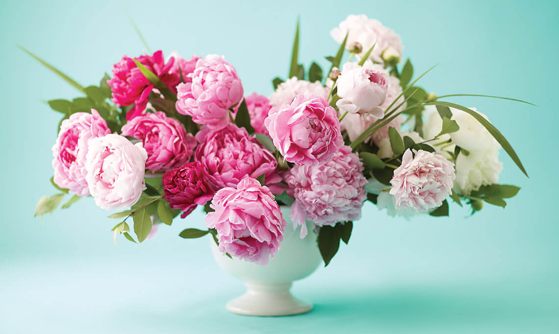 Peonies — a favorite of Babcock’s — are a lush statement, needing only minimal greenery to dazzle any anthophile. photograph by Stacey Van Berkel