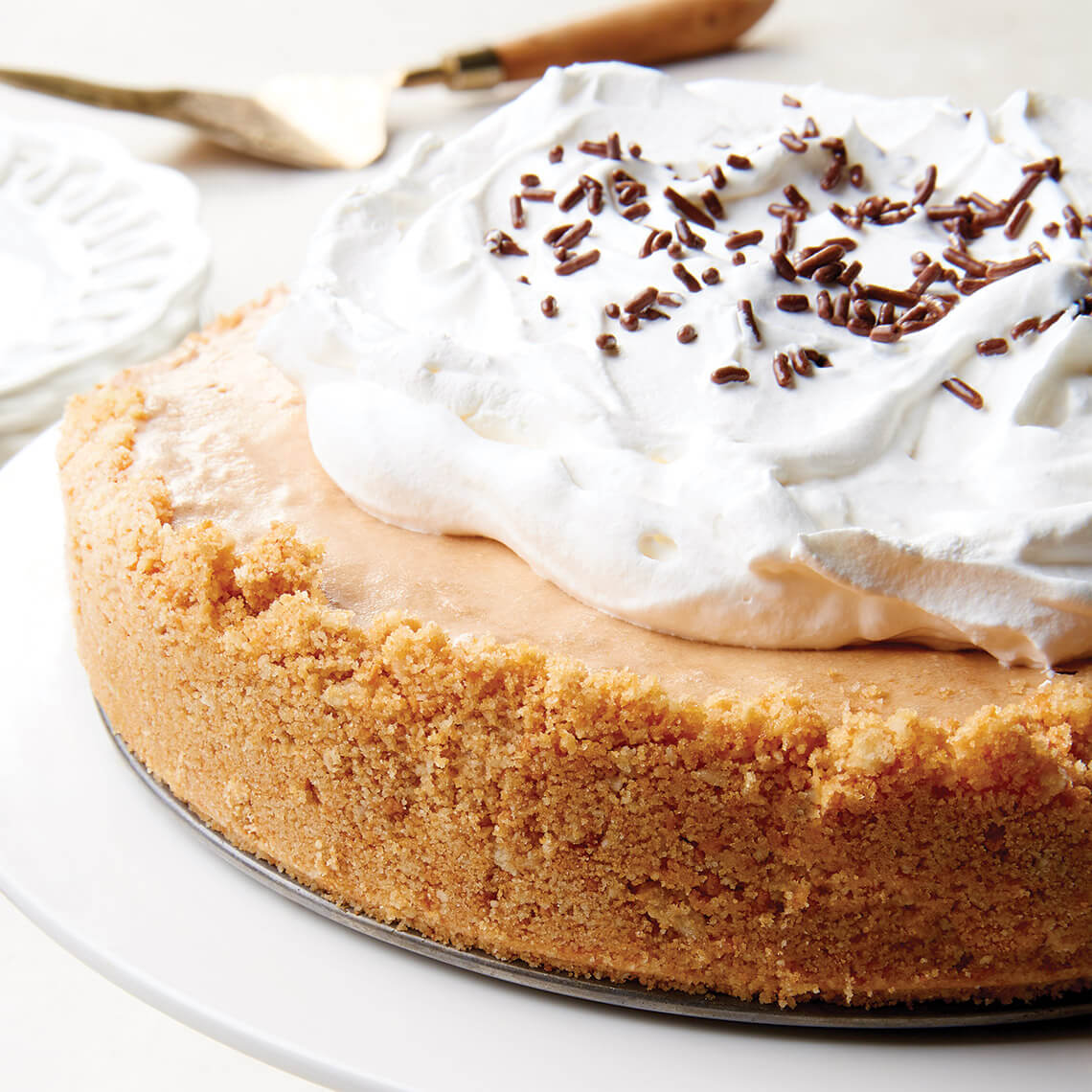 In a separate bowl, beat egg whites on high speed until stiff peaks form. Fold egg whites into chocolate filling until well combined. Pour filling into pan and spread evenly. Cover with plastic wrap and refrigerate 24 hours. Serve with whipped cream and sprinkles.