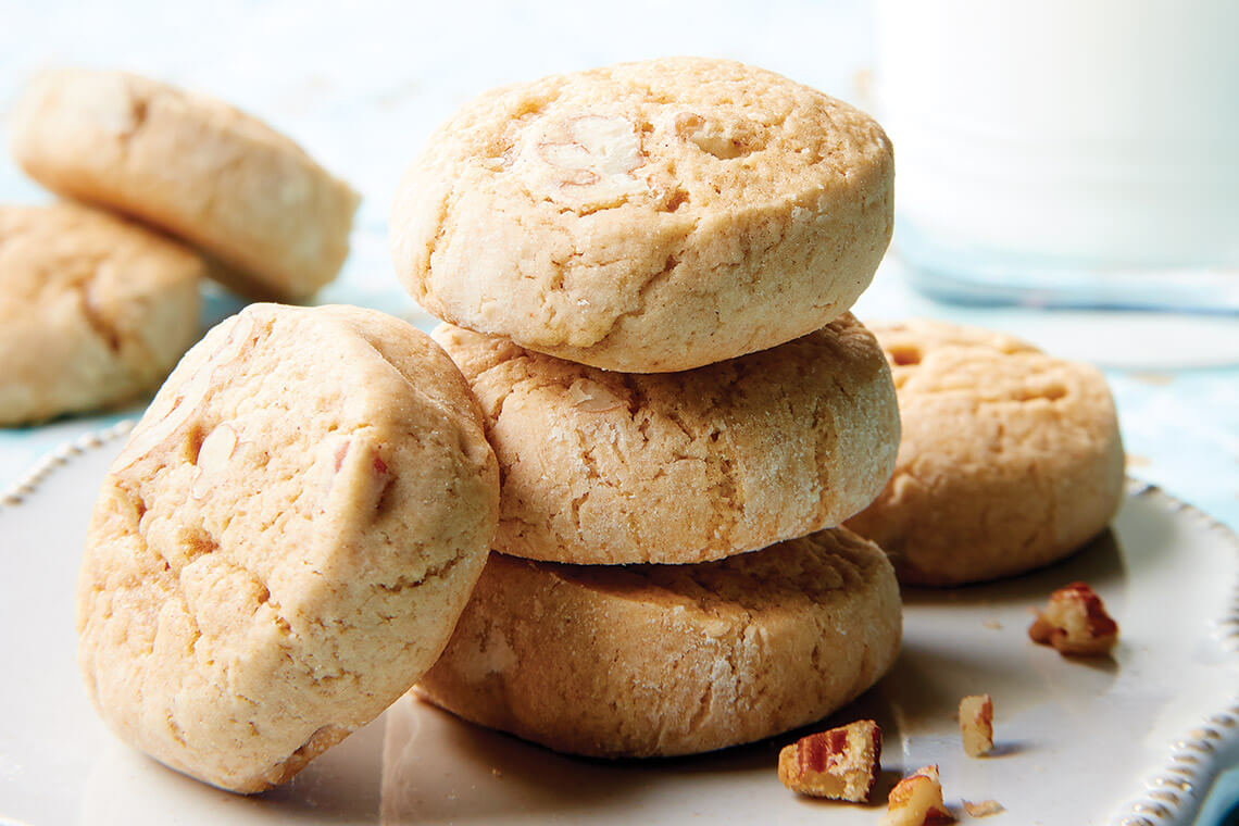 Slice dough into ½-inch-thick rounds and place on parchment-lined baking sheet. Bake for 10 to 12 minutes or until edges are slightly browned. Place cookies on a cooling rack. Store in an air-tight container.
