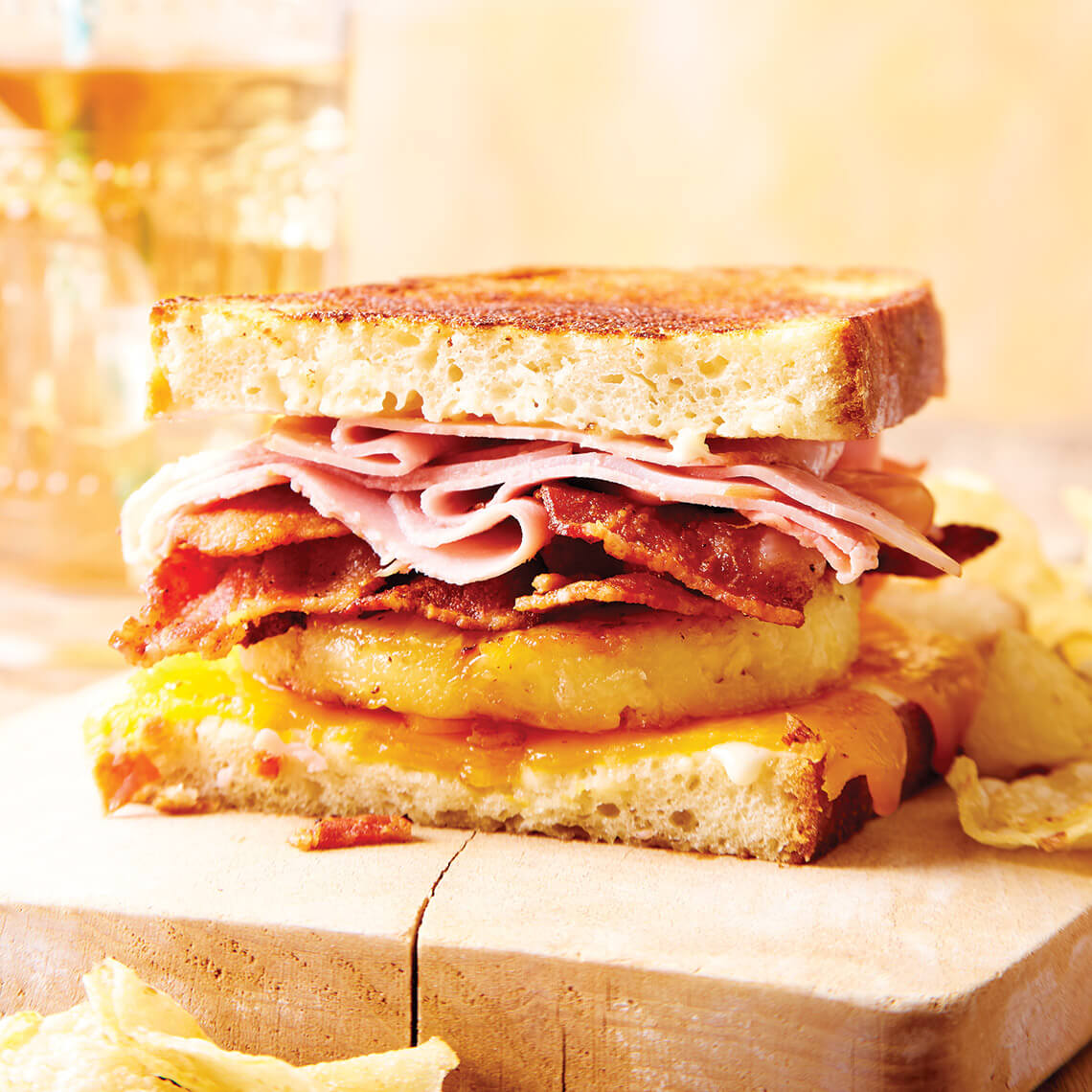 Grilled Ham, Bacon, Cheddar, & Pineapple Sandwich