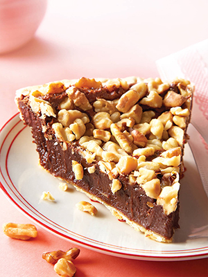 Pour mixture into pie shell; sprinkle top with walnuts. Bake for 45 minutes to 1 hour or until crust is golden brown and pie is set. The center should be slightly jiggly. Allow pie to cool on counter for 30 minutes before cutting.