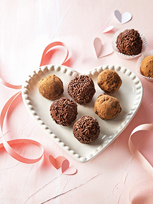 Cover the bowl and chill the mixture for 1 hour or until firm. Form heaping teaspoons (or small scoops) of the mixture into balls. Roll half of the balls in cocoa powder and the other half in sprinkles. Chill the truffles on a wax paper-lined baking sheet for 30 minutes or until firm. The truffles will keep in an airtight container, refrigerated, for 5 days.