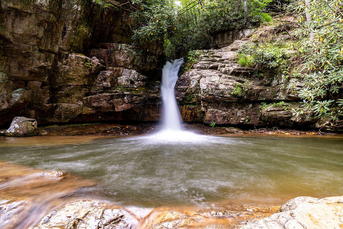 Plan to explore the .3-mile, out-and-back Blue Hole Falls Trail if you’re traveling with children who can’t resist kicking off their shoes and splashing in a refreshing pool. This easy waterfall hike ends at a swimming hole filled with Holston Mountain’s beautiful, blue-green water.