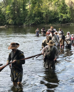 Each September, reenactors cross the Watauga River in the spirit of the Overmountain Men at Sycamore Shoals. Photography courtesy of Carter County Tourism