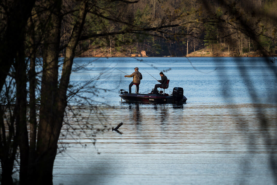 One of the nation’s cleanest lakes, Watauga Lake is “an underrated gem,” Shroyer says. “It’s deep and clean, and you’ll catch a little of everything. In the colder seasons, it’s more of the trout game — rainbow, brown, and lake trout — and when it gets warmer, more of the large mouth, small mouth, spotted bass.”