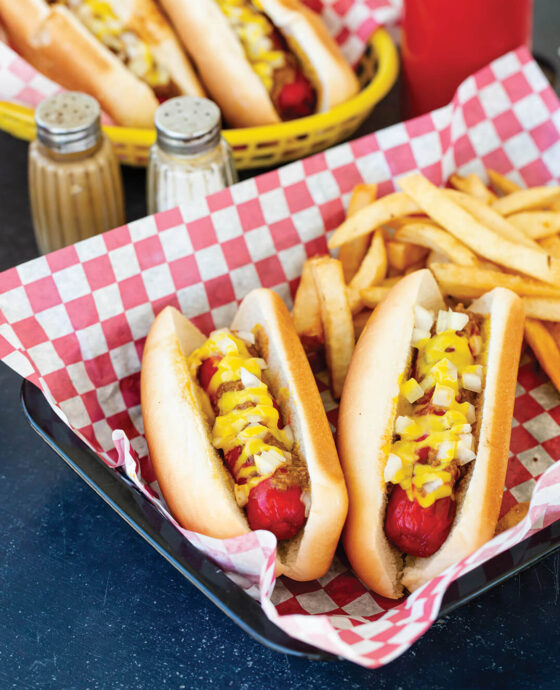 While JoCo is Carolina Packers’ home turf, it by no means holds a monopoly on red frank fever. Just across the Harnett County line, Daddy Bob’s serves up Bright Leafs with an array of toppings, including three kinds of slaw — regular, jalapeño, and barbecue — as well as a rich cheese sauce.