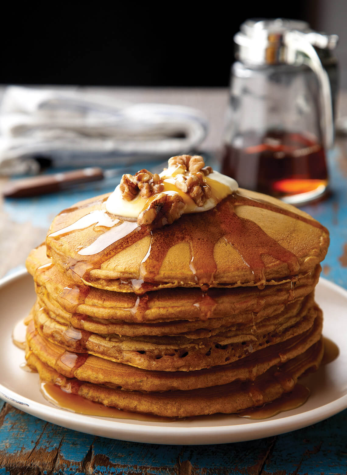 Find the recipe at ourstate.com/pumpkin-pie-pancakes.