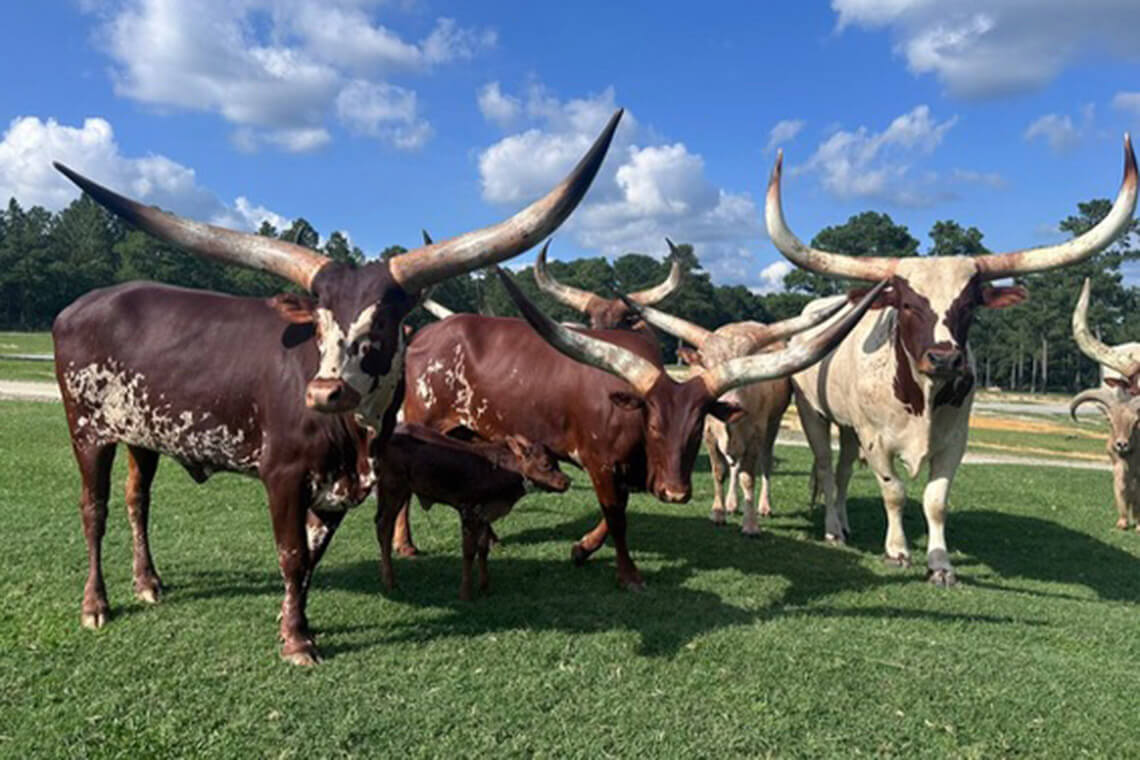 Greet the watusi cattle and other four-legged residents at Aloha Safari Park. Photography courtesy of Visit Pinehurst, Southern Pines, Aberdeen