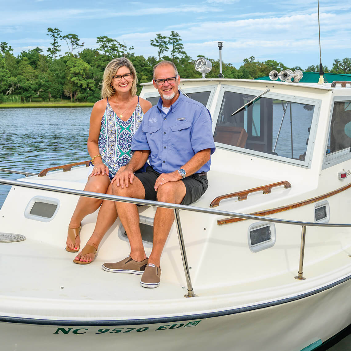 Capt. Tim Simpson expertly navigates the Lady Swan through the marshy waters of West Channel, startling a great blue heron out of its hiding place among the tall grass. Neon green in the summer sun, the blades sway back and forth, dancing in the warm breeze. During low tide, the grass teems with life, as the shallow water reveals oysters clinging to reefs at the base of the vegetation and fiddler crabs scurrying between the stalks. Simpson steers his pontoon boat past Huggins Island toward Bear Island — both part of Hammocks Beach State Park. Thanks to the presence of the park, which limits development, this area is full of unspoiled beauty, and Simpson and his wife and first mate, Jane, stress the importance of being good stewards of the environment. On one cruise, the couple even rescued an endangered Kemp’s ridley, disentangling the sea turtle from a fishing line and releasing it back into the water.