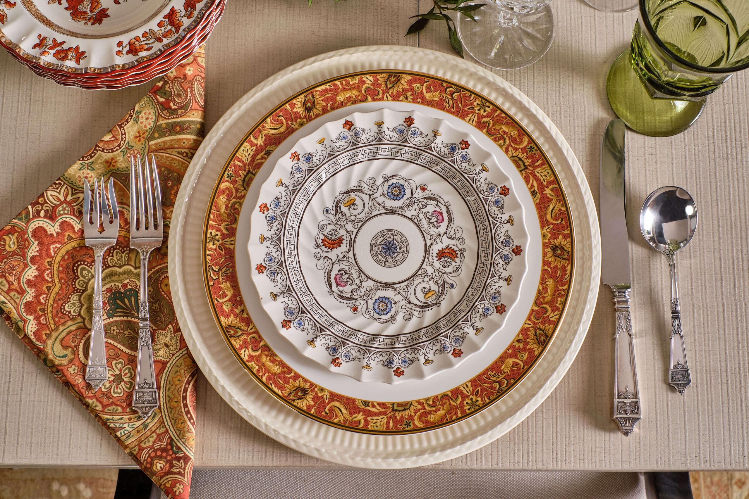 The pieces you inherited from your grandmother and great aunt don’t have to match the china you received as a wedding gift. In fact, mixing and matching different styles and patterns is a more modern interpretation of the holiday table and the results can be beautiful.