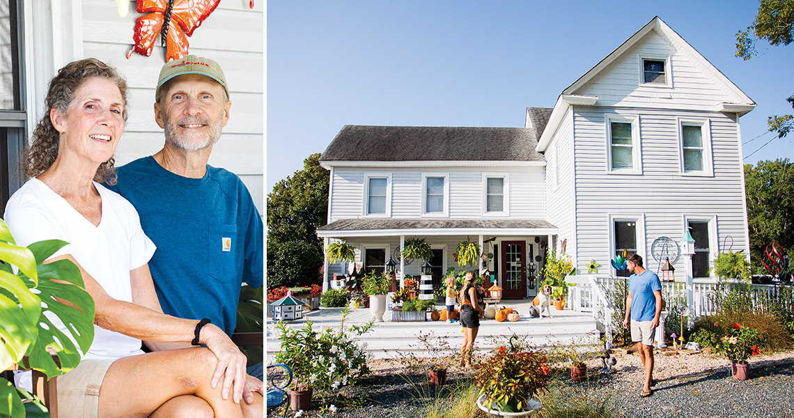 About a mile from the Wright Memorial Bridge in Point Harbor, Sibbie and Eddie Griggs watch their daughter’s coonhound, Copper, nuzzle up to customers walking down the pathway to their garden center, Carolina Charm. “Copper’s our greeter,” Sibbie says with a laugh.