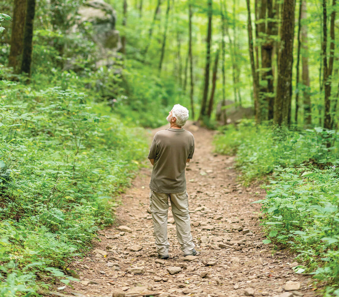 Participants on Mark Ellison’s forest therapy walks, like Ed Kelley, reap the restorative benefits of solitude in nature. photograph by Ryan Donnell