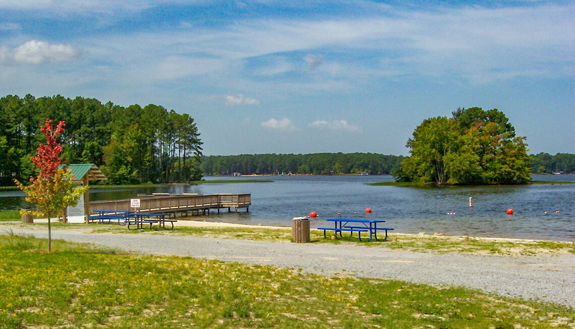 Pack a picnic (and your swimsuit if it’s warm enough!) and spend the day at Lake Gaston. The day-use area includes a sandy beach and swimming area, grills, a picnic table, horseshoe pits, a playground, and a pier.