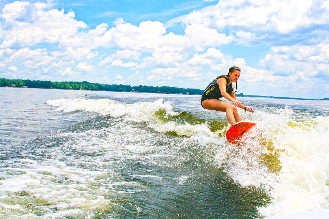 Learn to surf on a lake with WakeSurf NC. Photography courtesy of Visit Halifax