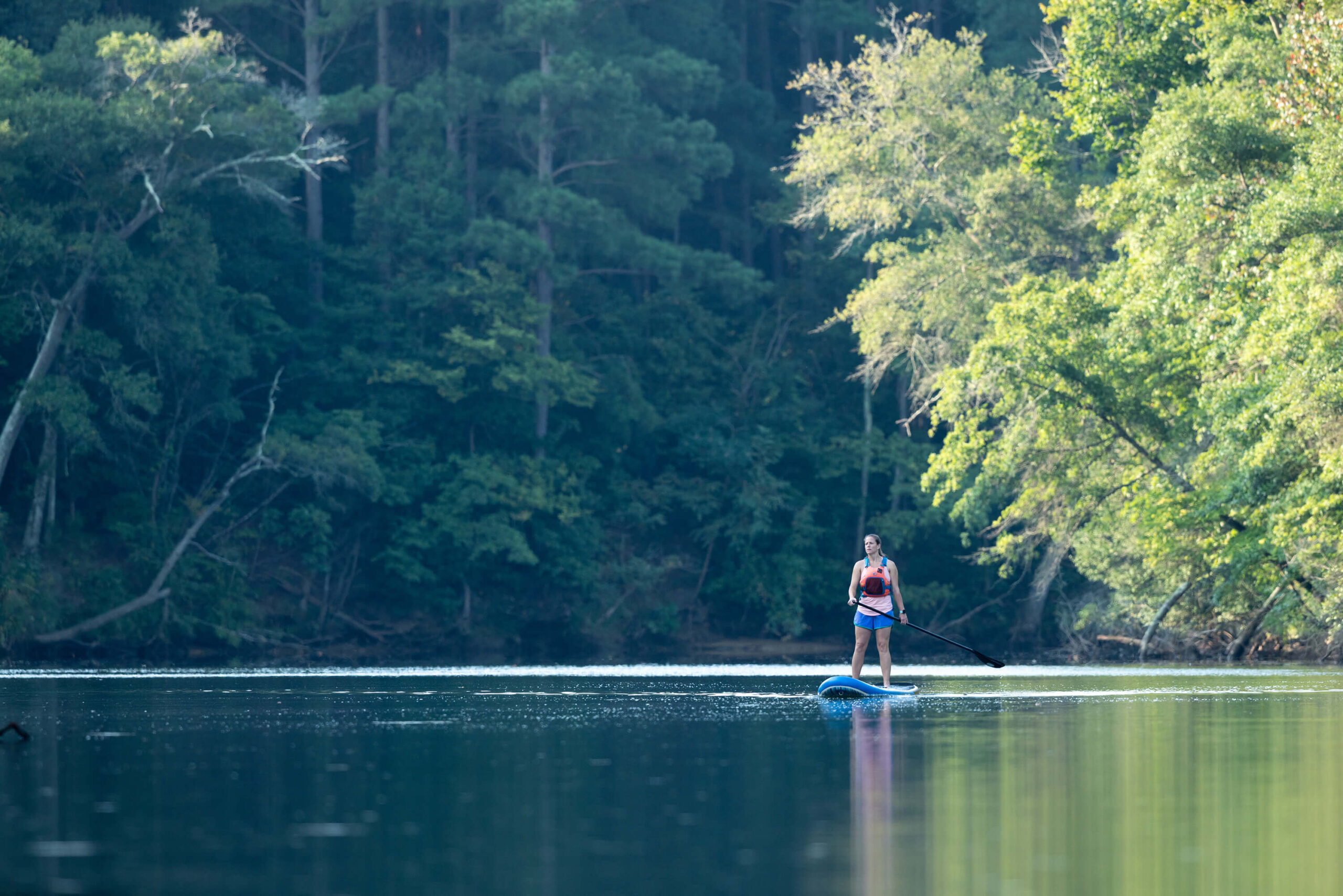 In addition to the center’s Daily Yoga series, Stand-up Paddleboard Yoga is offered (registration only) on the Catawba River’s flatwater.